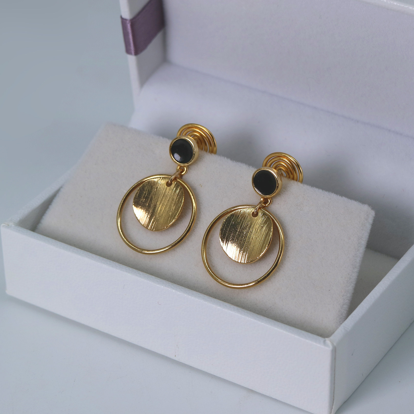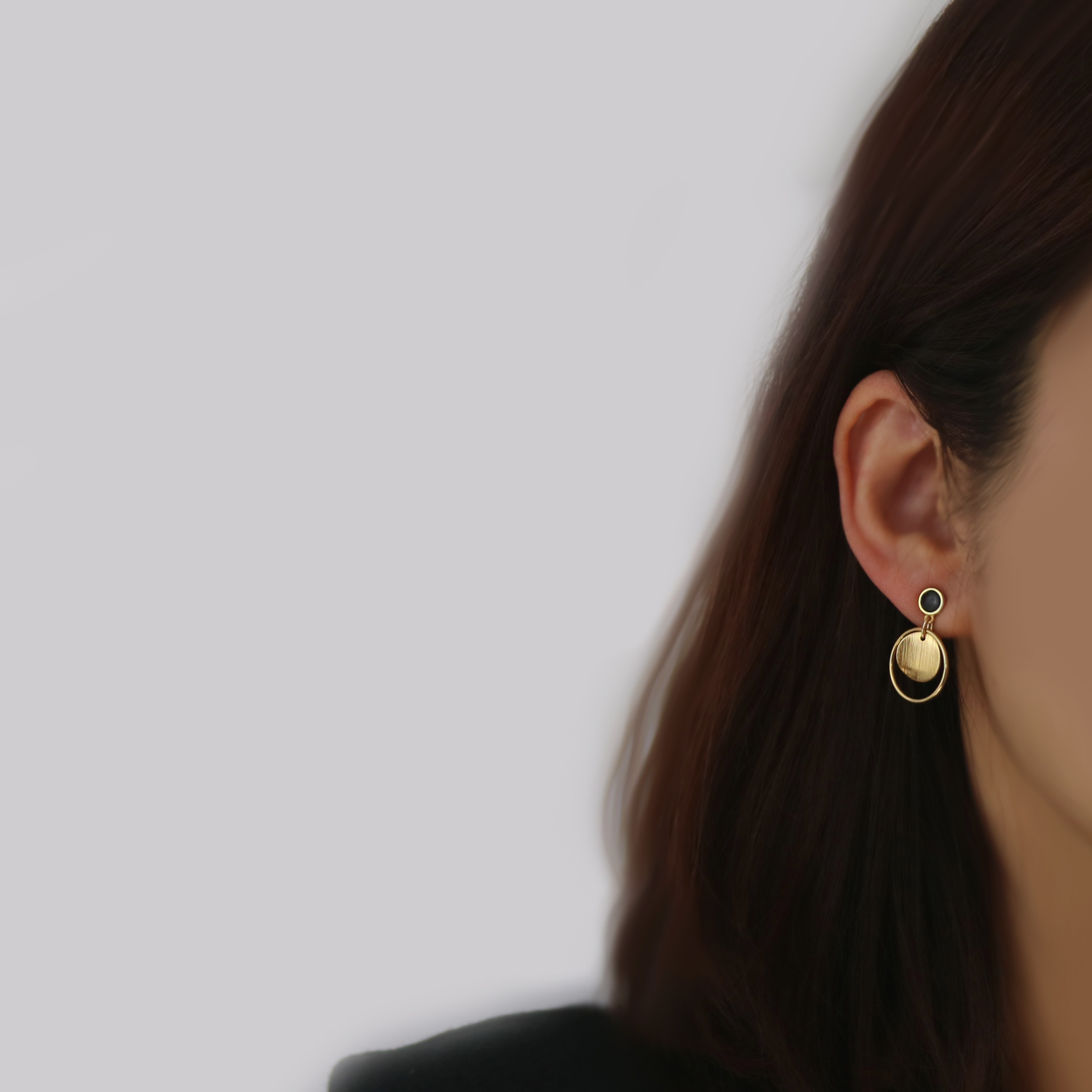 Black drop rubber ring brushed small curved surface modern all-match ear clip CC decorated with mosquito coil surface comfortable earrings