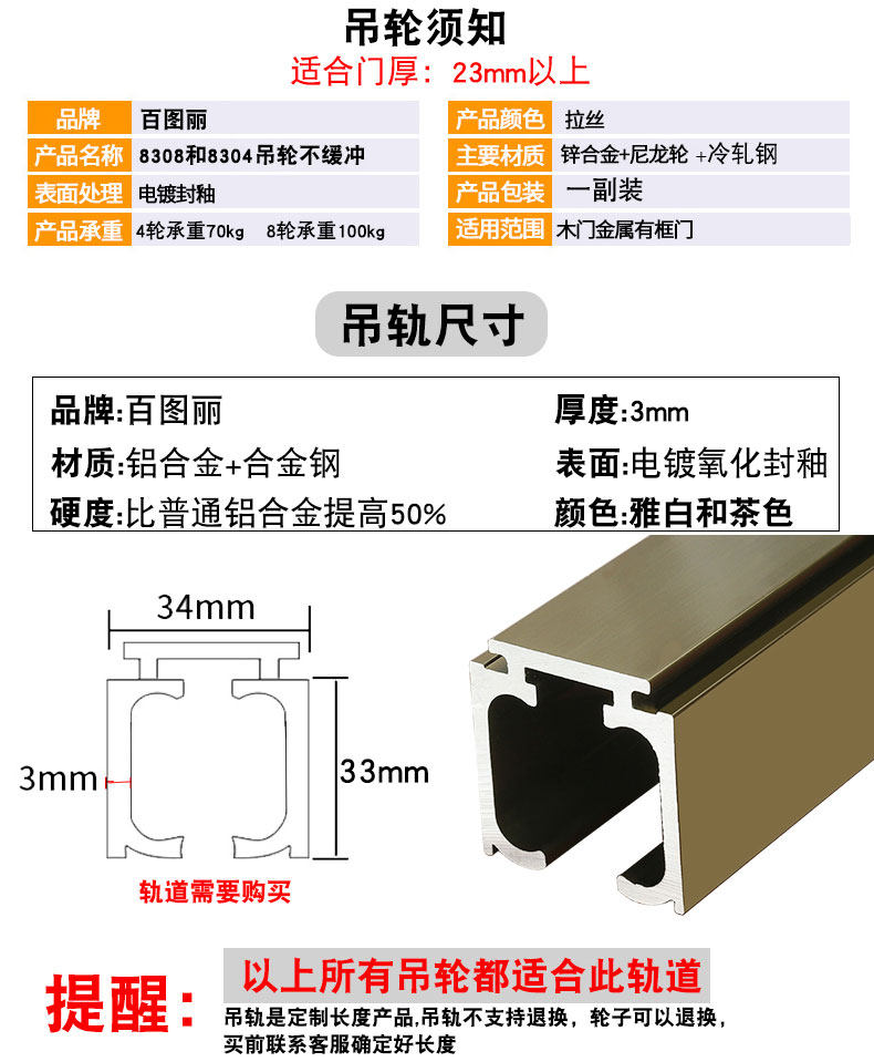 100 Touli two-way buffer suspended wheel pulley Ramen rail hanging wheel kitchen damping buffer suspended wheel black