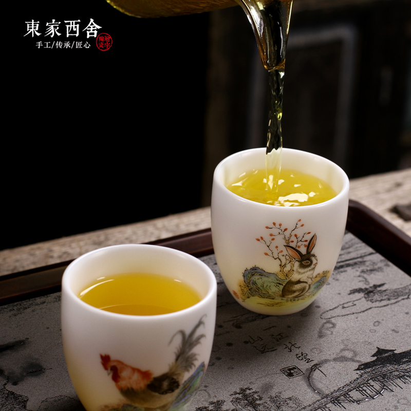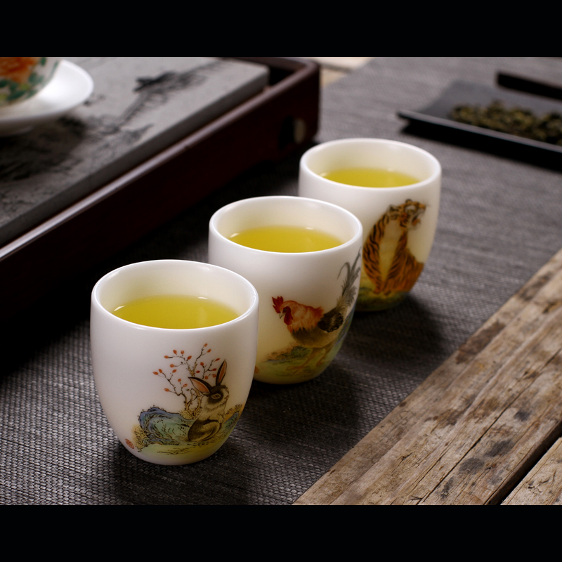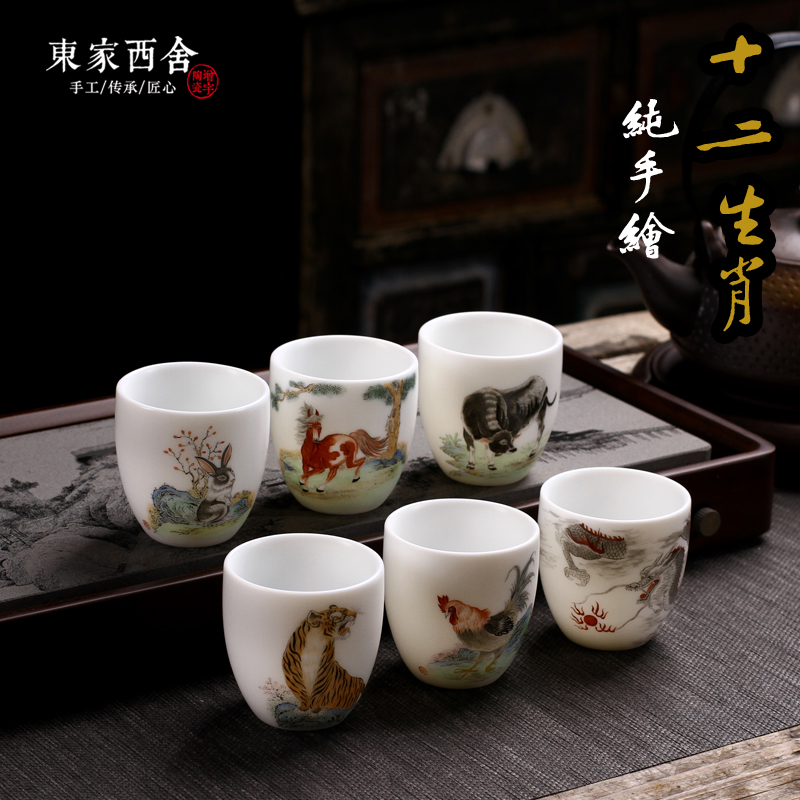 Zodiac master's cup defied white porcelain pure hand-painted tea drinking cup single cup Gongfu tea cup goat fat jade porcelain tea set