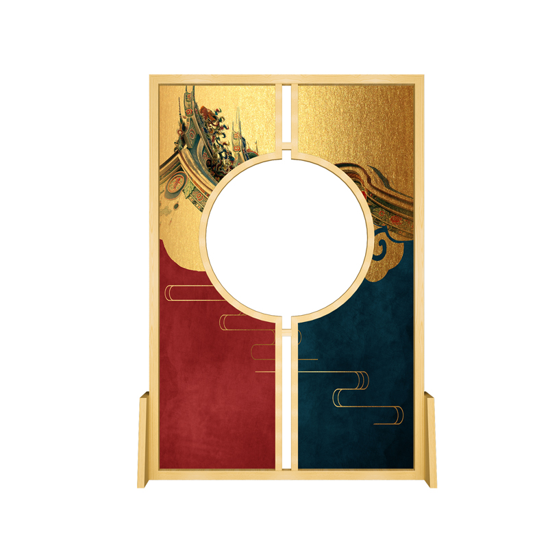 New Chinese style solid wood mobile fabric screen living room decoration barrier porch round hollow partition seat screen Xiangyun
