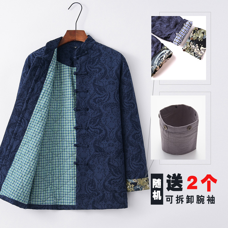 (High-end) Chinese style Tang suit male middle-aged and the elderly cotton jacket Cotton grandpa cotton coat winter clothing dad thickened hemp