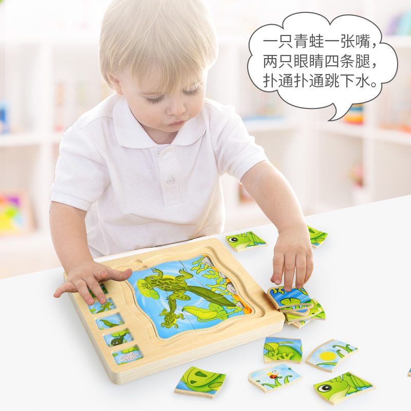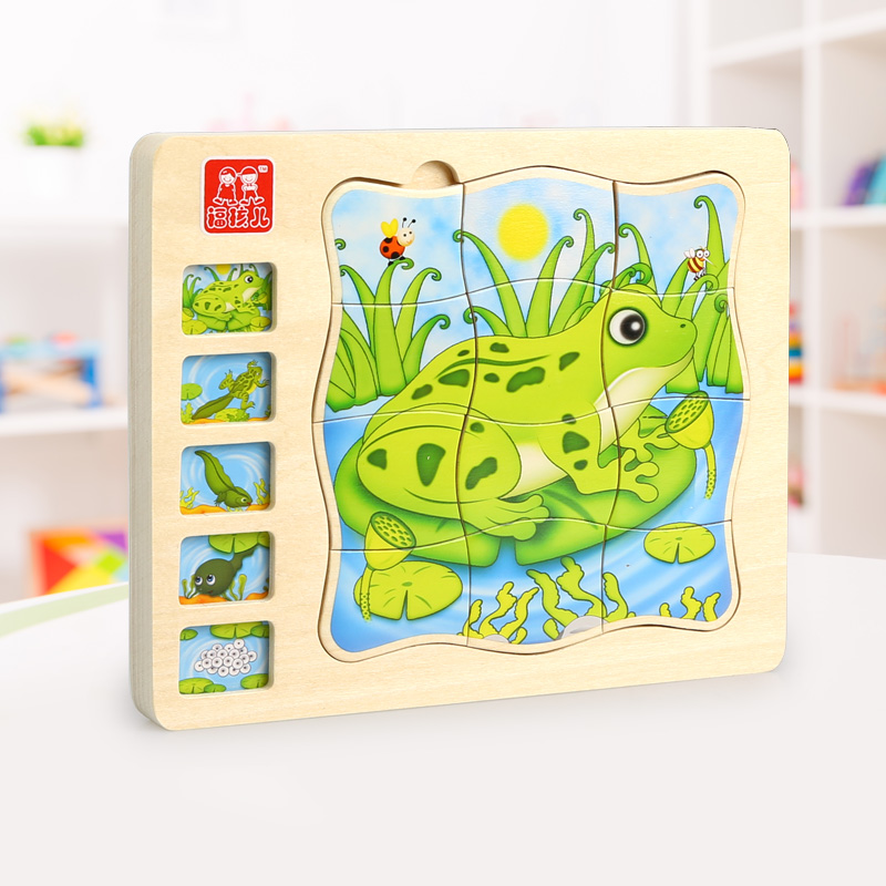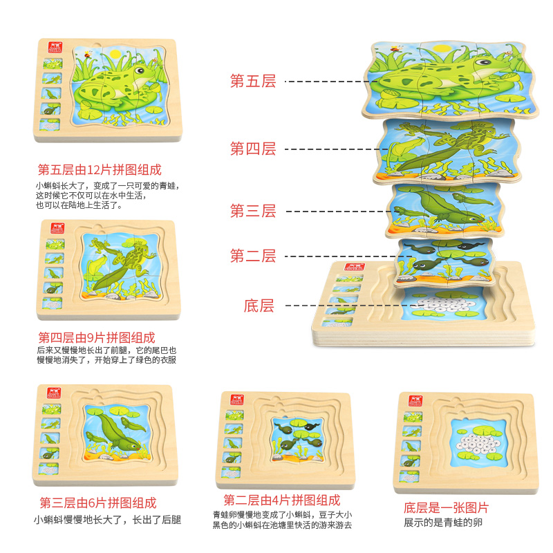 Wooden multi-layer frog growth puzzle irregular shaped ladder advanced flat drawing board baby children's educational toys
