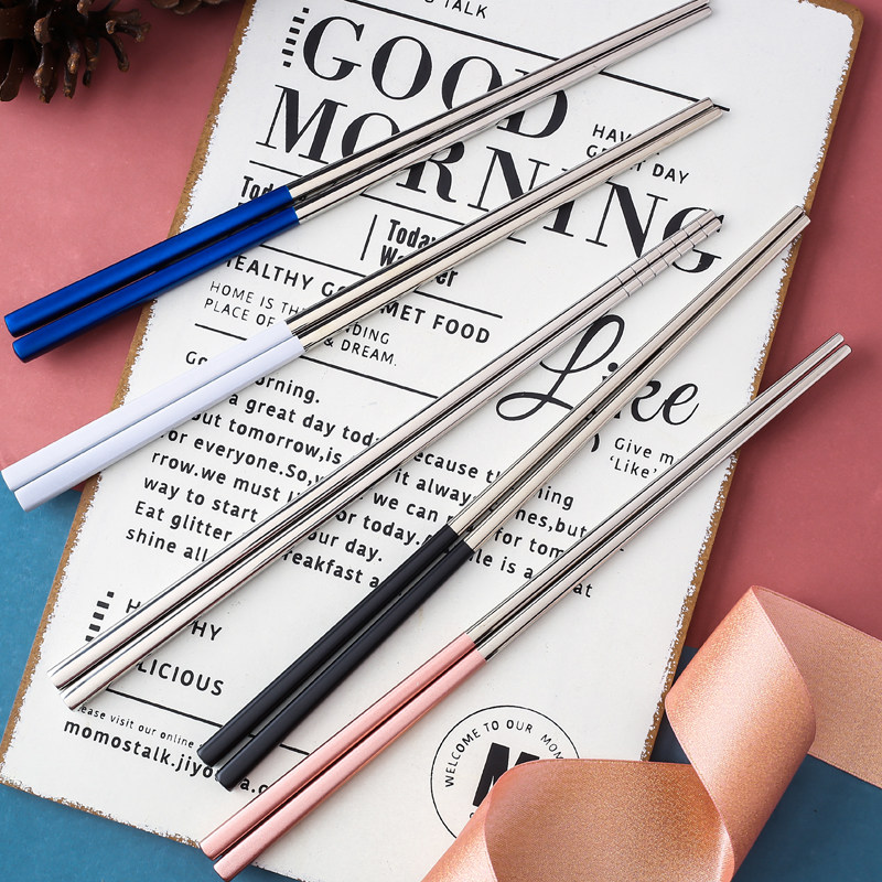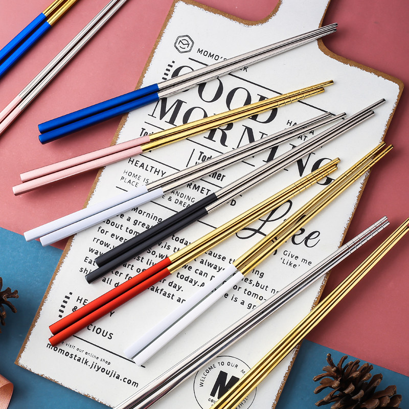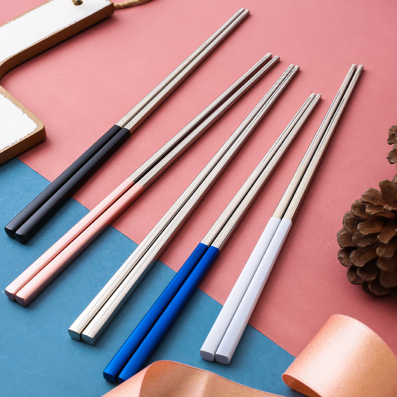One pair of golden chopsticks, one pair of silver chopsticks, one pair of blue silver chopsticks, one pair of pink silver chopsticks, one pair of black silver chopsticks, one pair of silver chopsticks, one pair of blue gold chopsticks, one pair of pink gold chopsticks, one pair of black gold chopsticks, one pair of platinum chopsticks