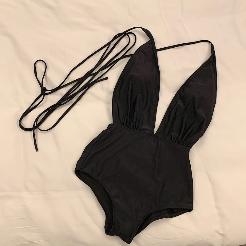 2020 new swimsuit female ins wind deep V super sexy fairy fan halter cover belly thin slim body bathing in hot springs