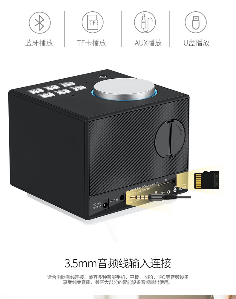 Electronic alarm clock Bluetooth speaker radio sound super minimalist About silent bedside luminous intelligent multifunctional seat clock
