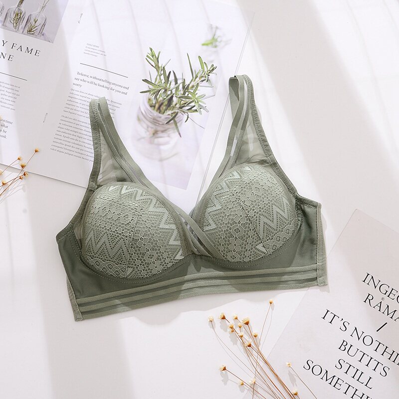 Foreign trade original single tail goods without steel ring bra comfortable sexy lace underwear female breathable small chest gather bra thin section