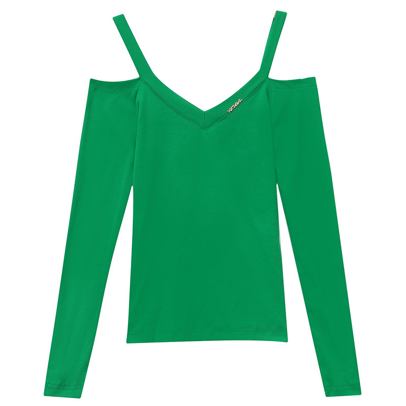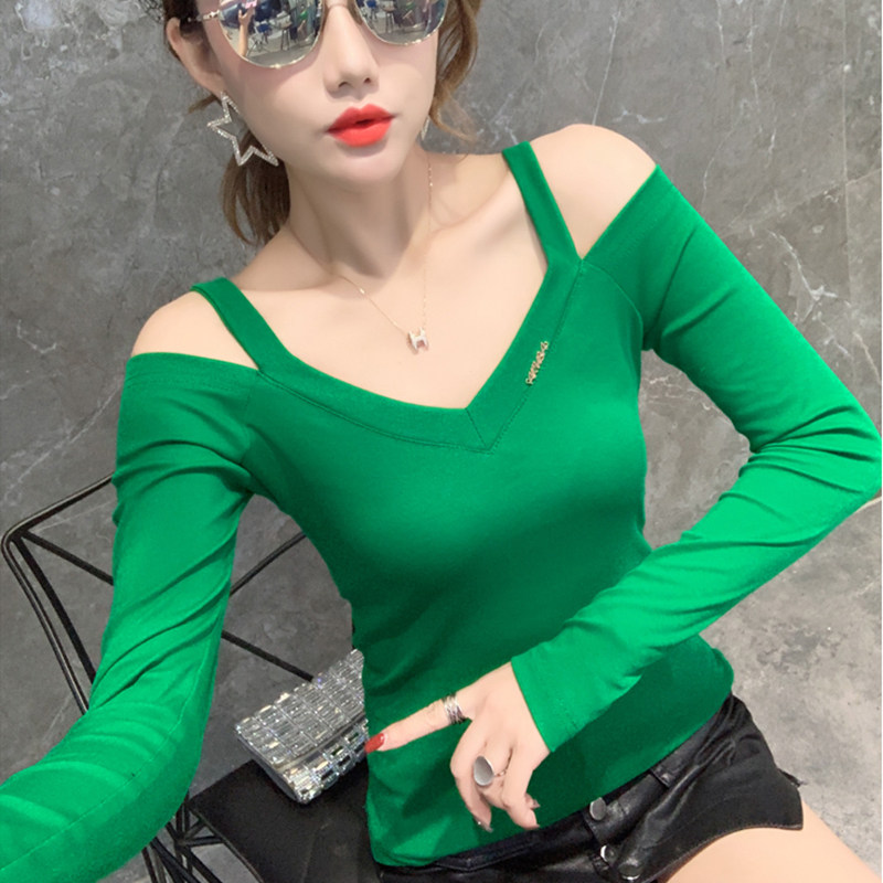 Foreign Pie Cardiovert Woman Dress 2021 Autumn Winter New V Collar T-shirt Woman Long Sleeve 100 Hitch Undershirt Dew Shoulder Blouse Tide