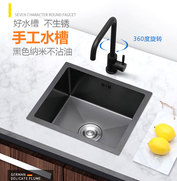 Black Nano 304 Stainless Steel Mini Sink Single Sink Small Number Kitchen Wash Vegetable Basin Balcony Bar pool Package