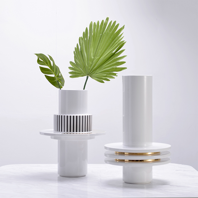Modern light luxury vase home decoration geometric gold edge flower arrangement ceramic flower ware model room dining table TV cabinet ornaments