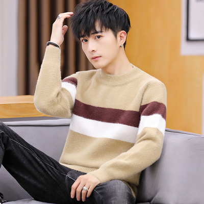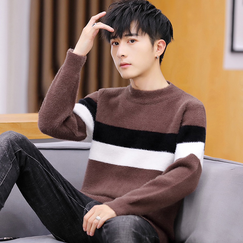 Mink velvet half high school collar sweater men's bottoming shirt plus velvet thick youth sweater winter Korean trend