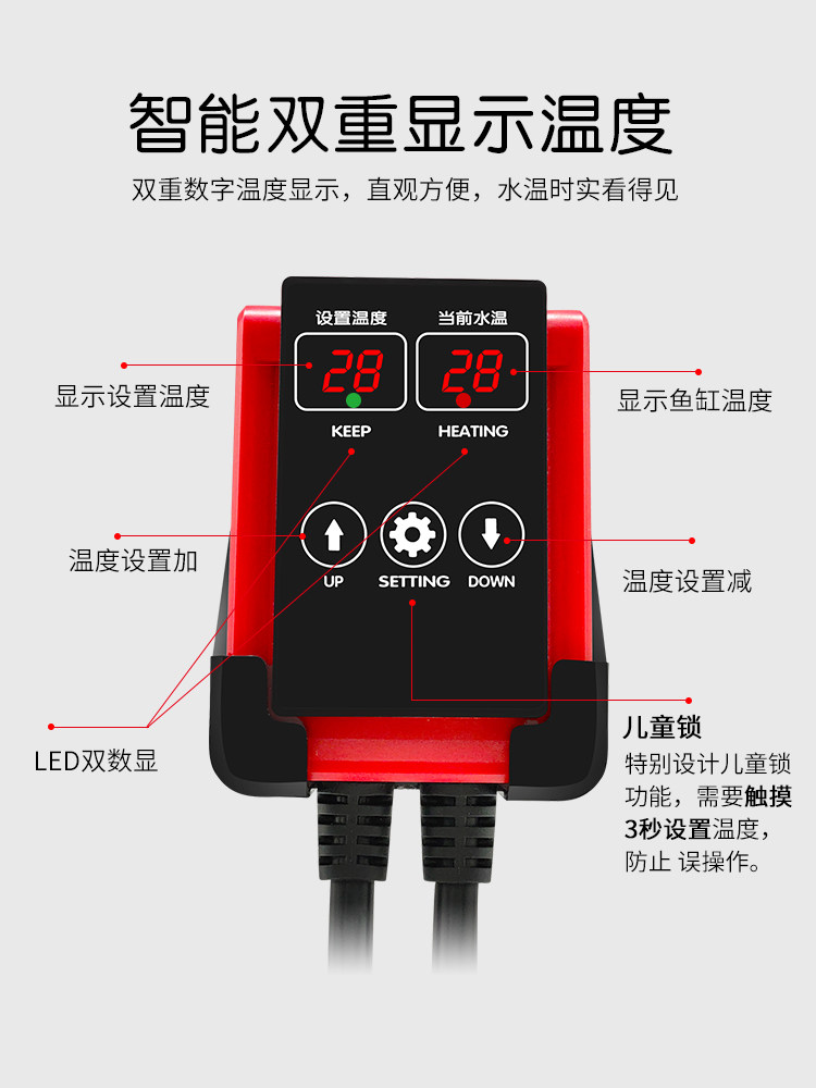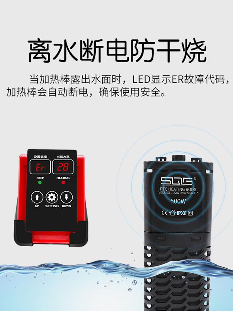 SQG fish tank heating rod automatic constant temperature explosion-proof electric heating rod energy saving frequency conversion PTC small aquarium temperature control