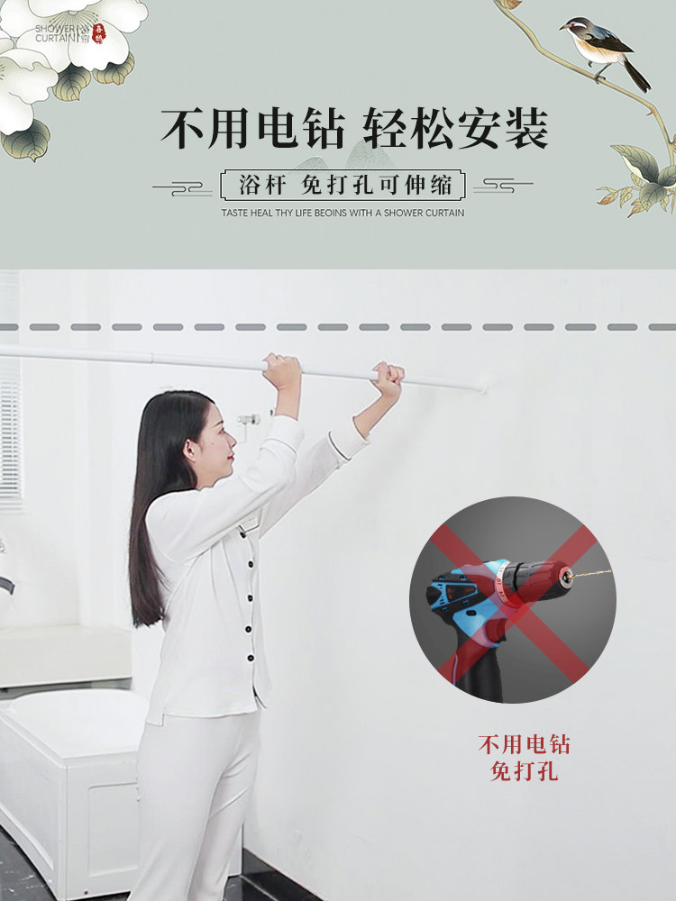 Black telescopic rod 70-120 shower curtain 100 wide * 180 high black ring strap Black telescopic rod 90-160 shower curtain 120 wide * 180 high black ring strap black