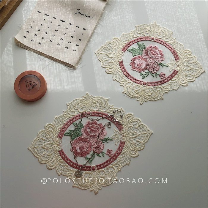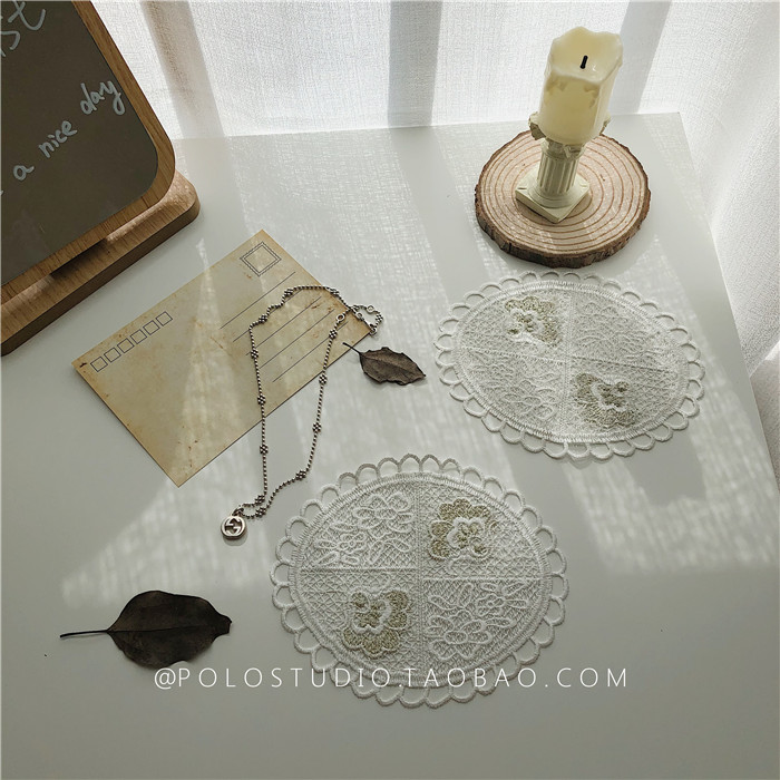 Retro Eurostyle Lace Small Flower Rose Cloud Embroidered Cup Cushion Table Cushion Dining Mat Background Cloth Swing Pat Props Table Cloth