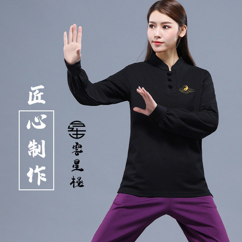 Tai chi suit men and women long sleeve martial arts clothes T-shirt practice with short sleeve summer thin-style cultural shirt performance new China-Taobao