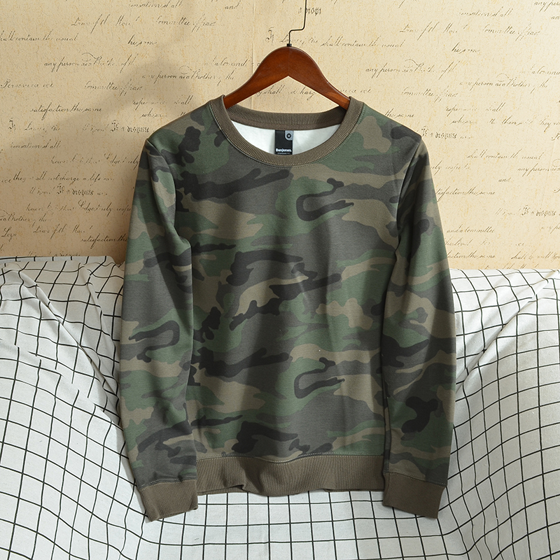 Camouflate-Lieven cap head camouflate-with hat-laced with camouflate-round collar camouflate-garnded sweatpants