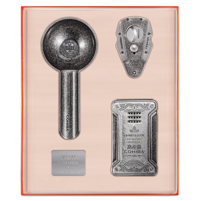 COHIBA Gaoxi Cigar Ashtray Cigar Slipper Cigar Slipper Three Pieces of Ancient Silver Tobacco Set C307