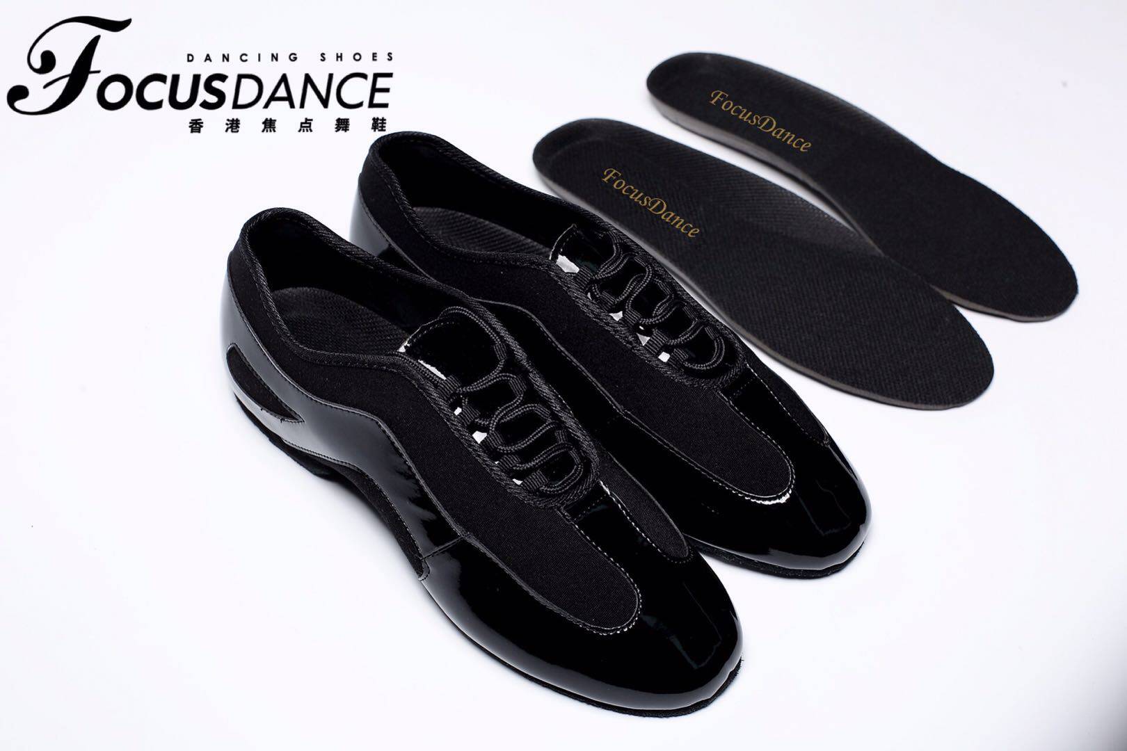 FocusDance Hong Kong focus dance shoes original Hong Kong quality patent leather and Oxford black ultra-light flat teacher shoes