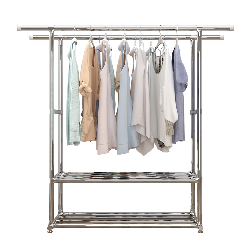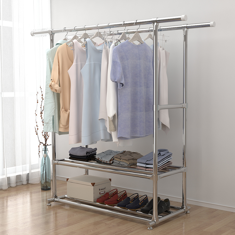 Stainless steel drying rack floor simple high and low double pole folding indoor hanging clothes rack bedroom drying Rod shelf