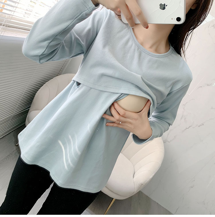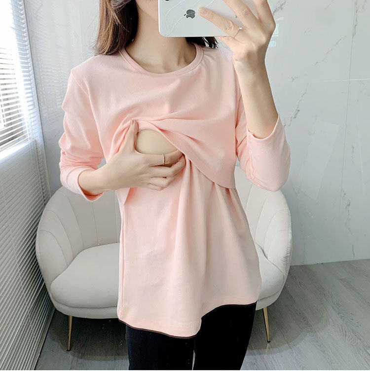 Breast-feeding Jersey Undershirt Spring Autumn Season Postpartum postpartum Breastfeeding Clothing Home-in-the-home The Long sleeves Breastfeeding Autumn Clothes-Taobao