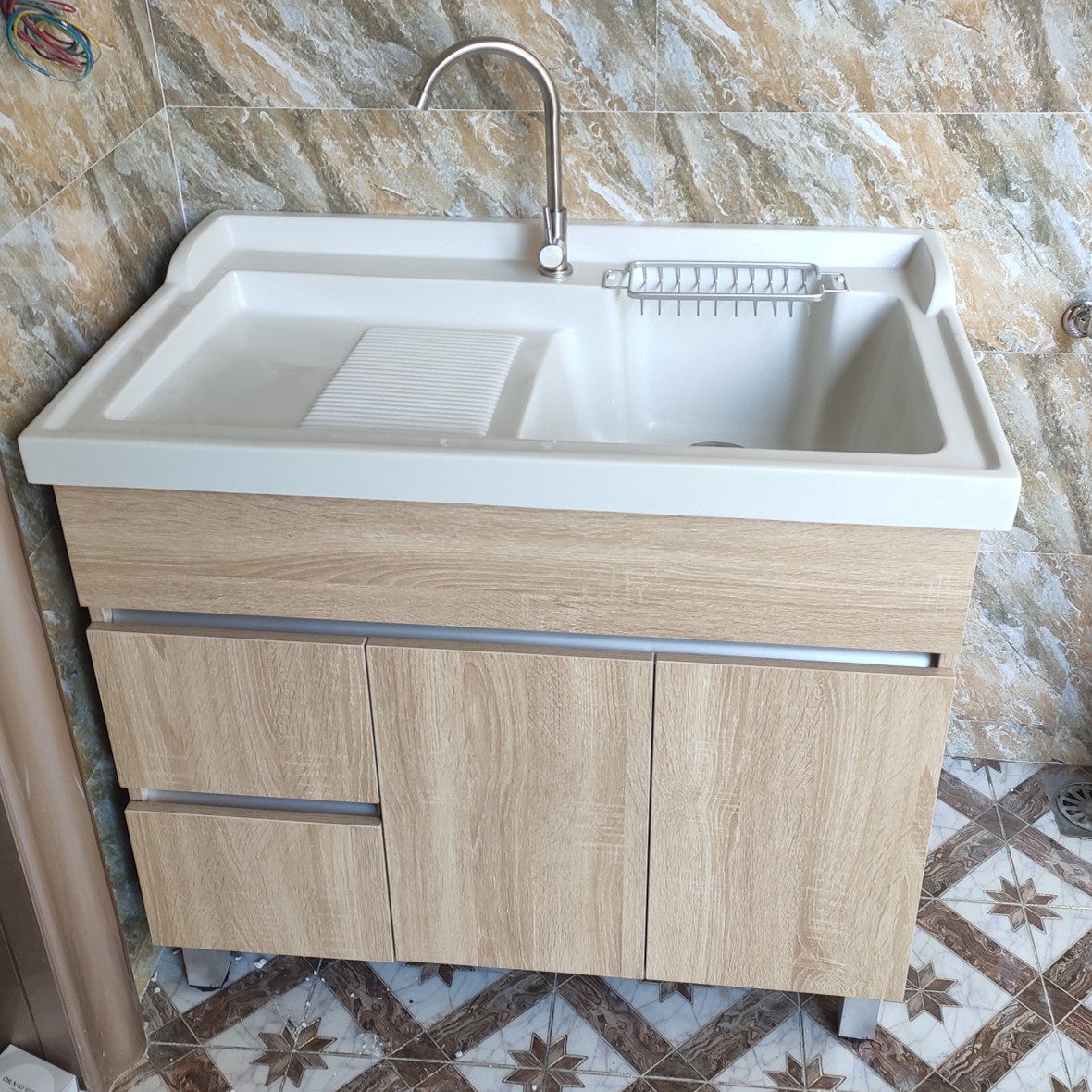 Solid wood laundry sink with washboard Wash basin combination balcony pool cabinet Laundry table laundry basin Laundry cabinet Bathroom cabinet