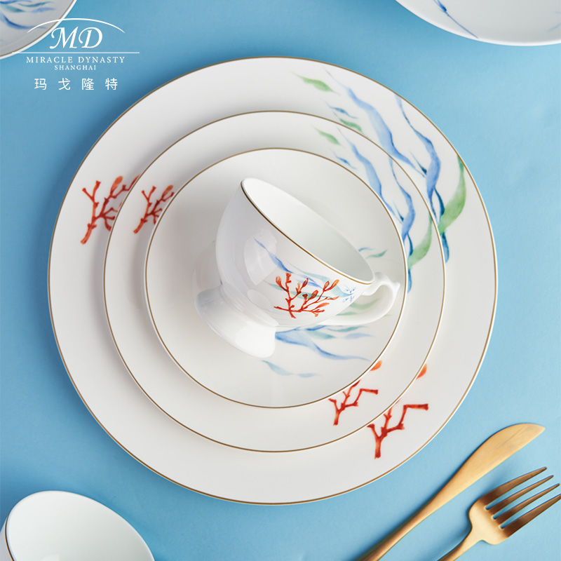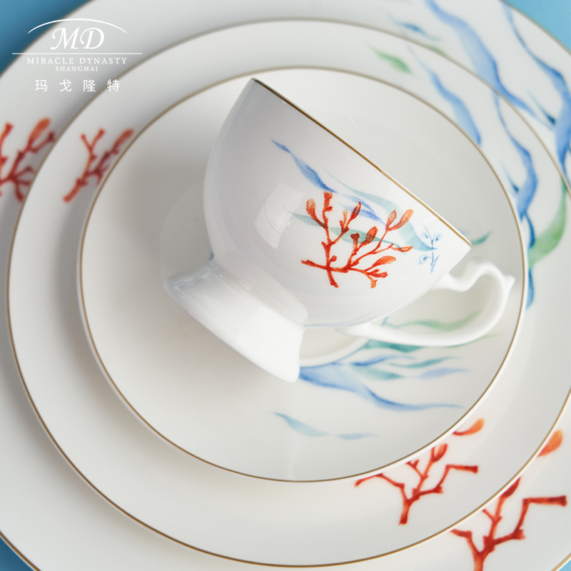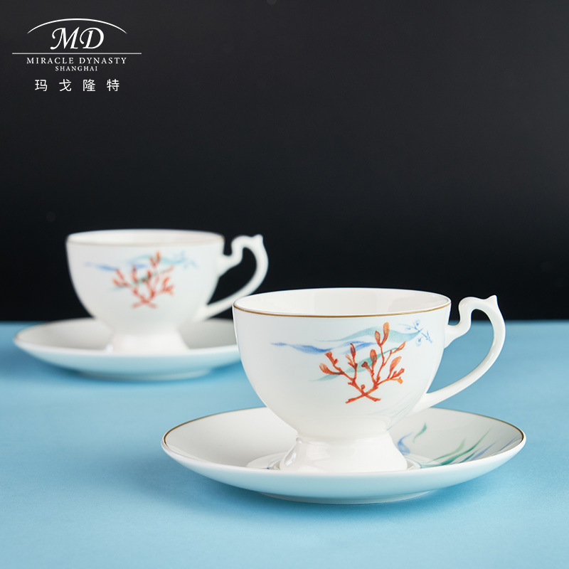 Margolonte Red Coral Western-style Coffee Cup Disc Suit 45% Bone Porcelain Content British Afternoon Tea Cutlery
