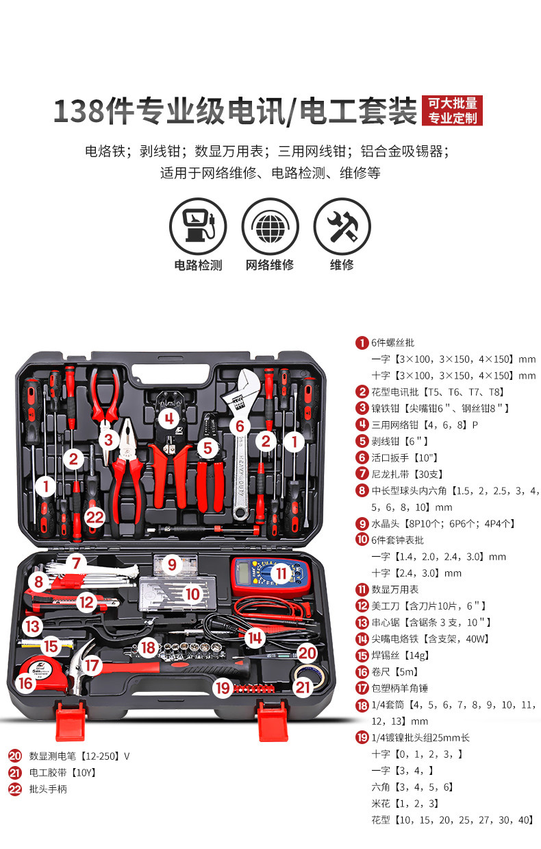 Kraft Weir 138-piece telecommunications electrician set H2923A electronic inspection and maintenance combination set of tools