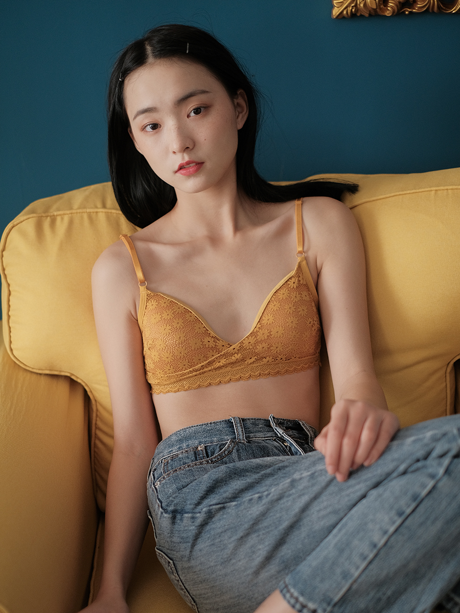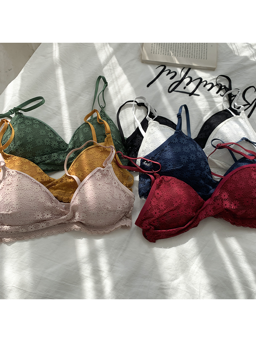 Xin gang help Bra Honmei year lace little daisy cross lingerie women no underwire sexy bra student bra girl