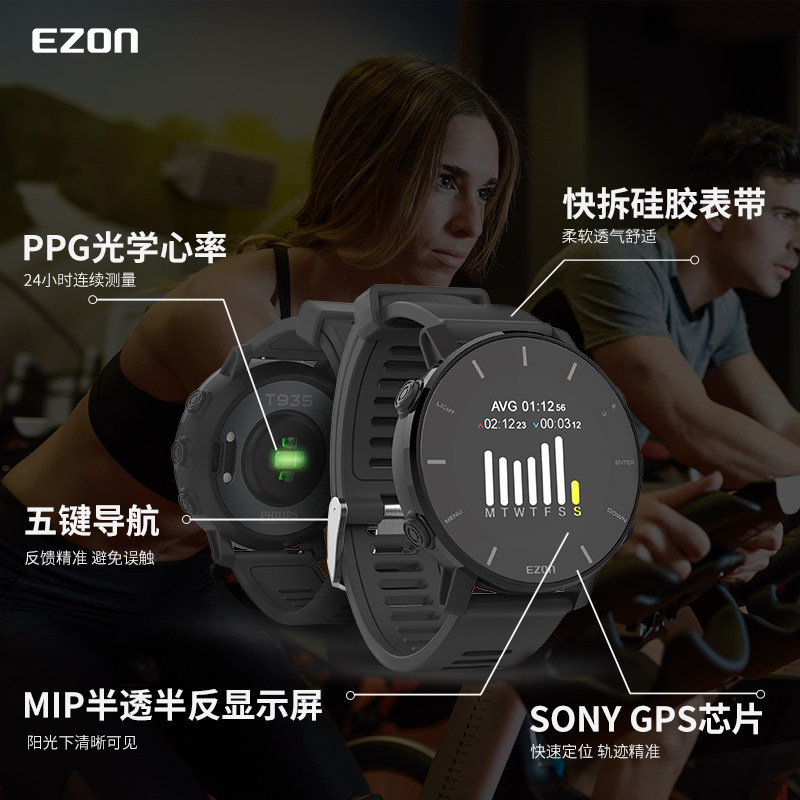 EZON Yi zhun sports watch men's smart outdoor watch GPS heart rate watch marathon running table T935