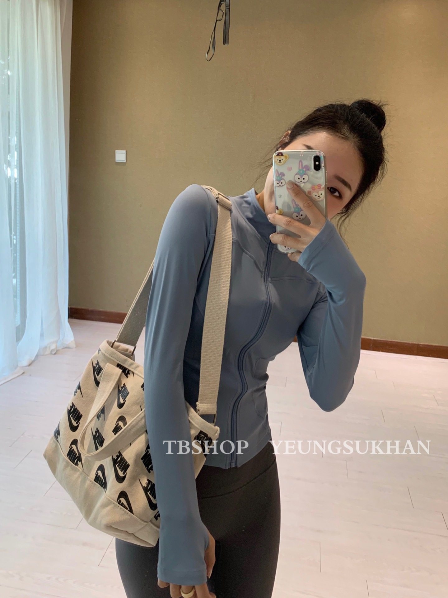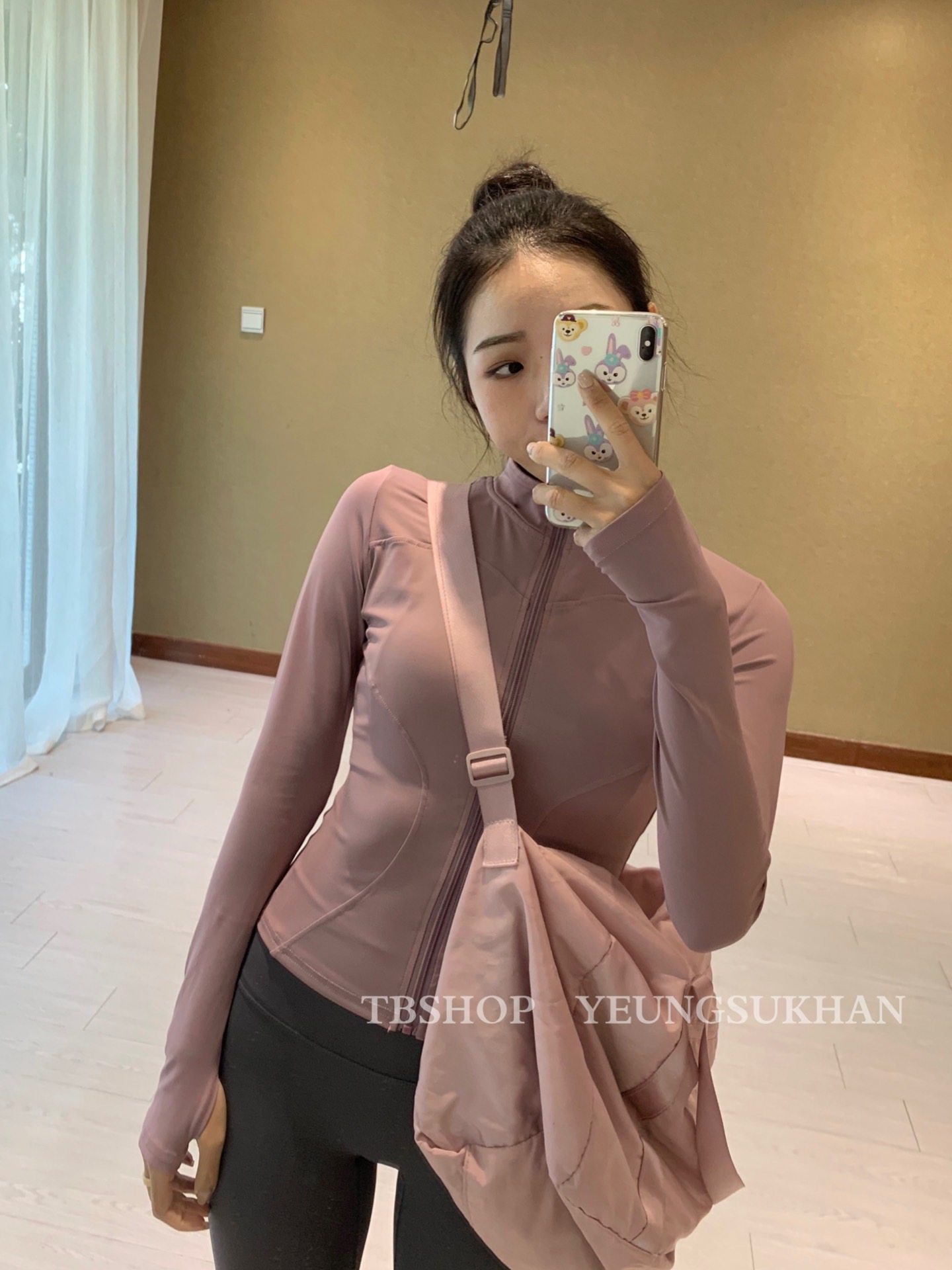 @YEUNGSUKHAN Stand-up collar small waist fine zipper jacket Yoga running fitness air yoga outside wear long sleeves