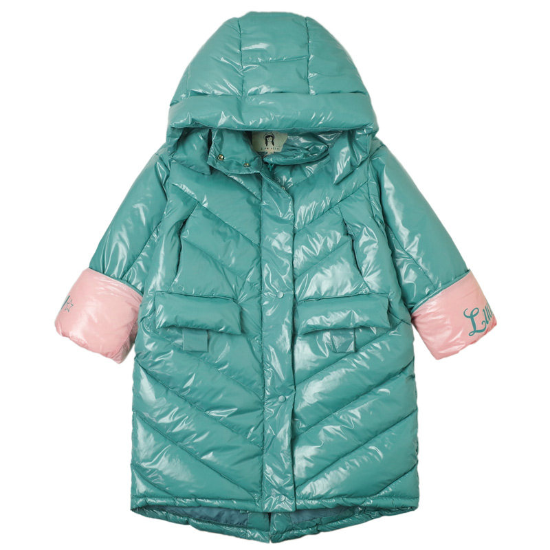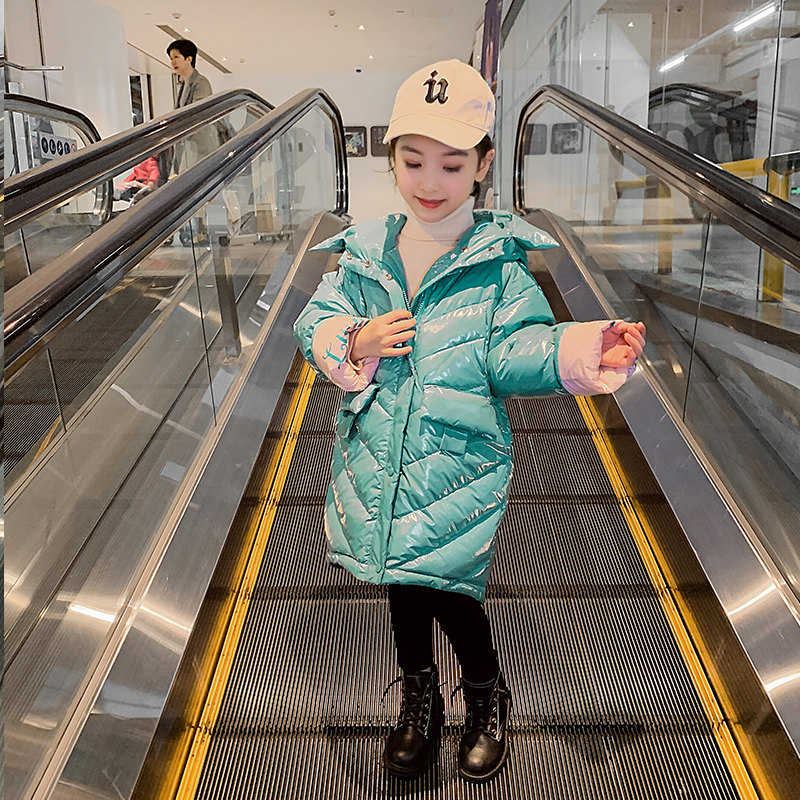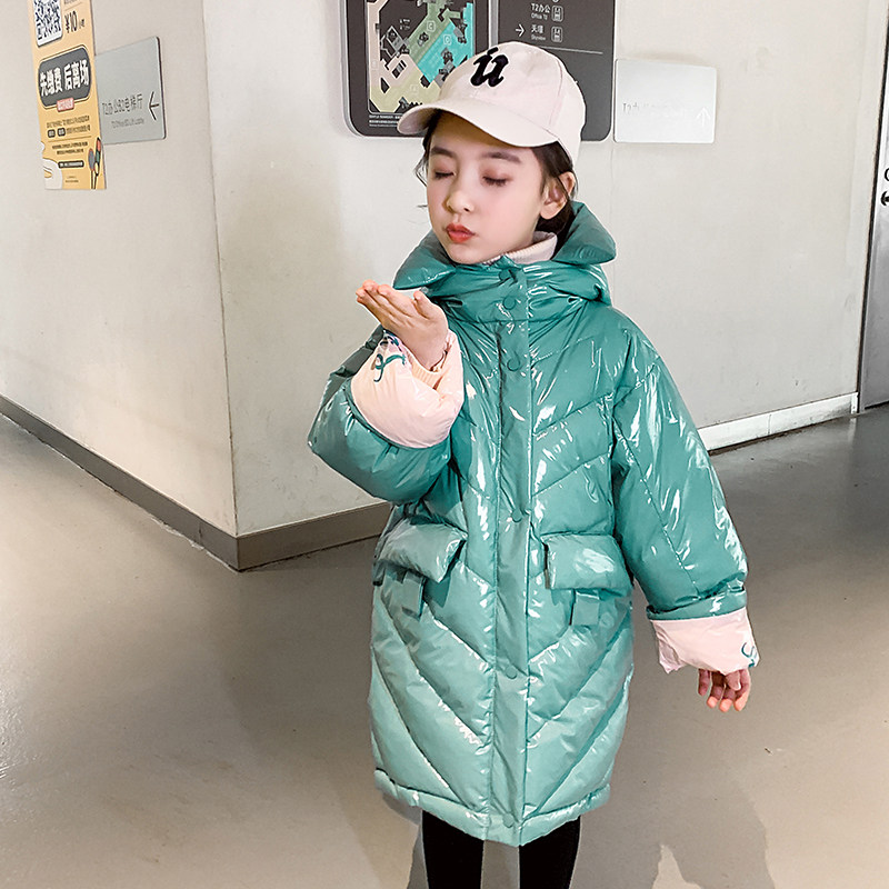 Leave-in bright surface over-the-knee girls down jacket winter 2020 new children's medium and long version of the Foreign school coat Korean version of the big child