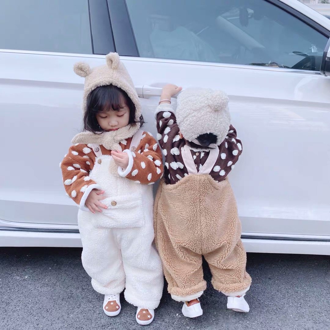 Single piece plush holding baby bag pants (white) single piece plush baby holding bag pants (moose) single piece plush blush blouse (light curry) single piece plush blush blouse (deep curry) beihuang little bear hat