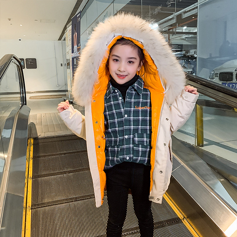 Girls down jacket winter 2020 new children's coat in the long version of the female big boy Ocean school tide children's clothing girls hair collar