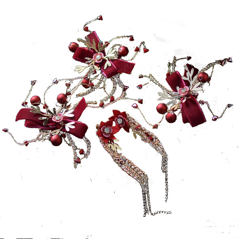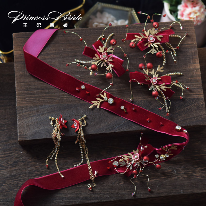 Princess Princess Red Bride Toast to Handmade Kit Handmade Japan-ROK Beads Water Drill Side Clip Gown Accessories Accessories Accessories