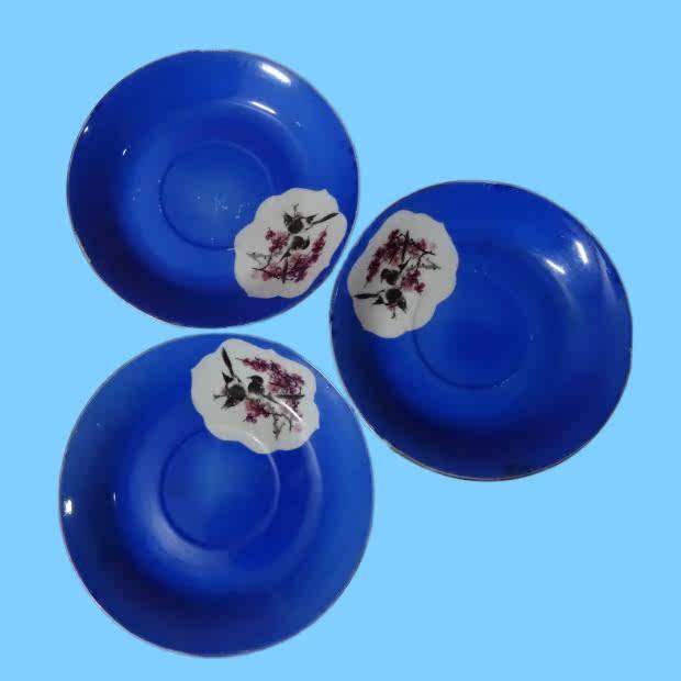 Cultural Revolution Blue Glazed Windows Old Plate Dish Delight with Raised Eyebrows Tea Cups dip in saucer Saucer Bag Old Antique Physical Photo