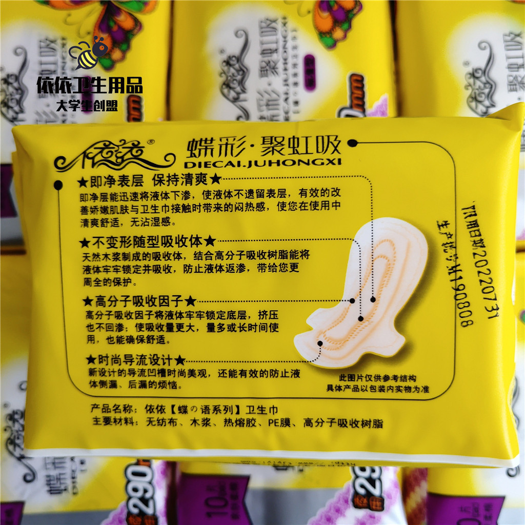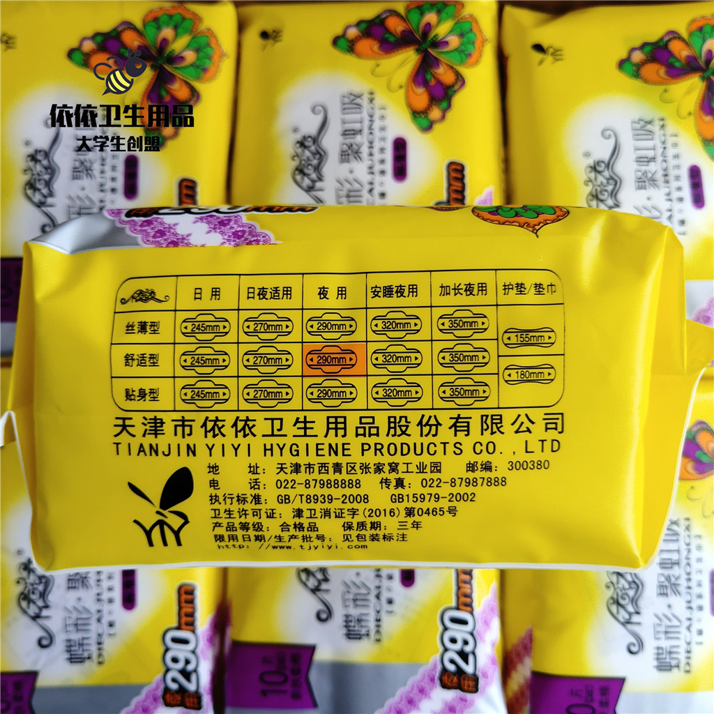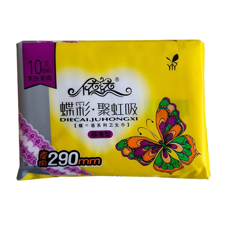 A set of 50 pieces of Yiyi sanitary napkin butterfly color standard night-use lengthened 290mm cotton soft and skin-friendly 10 pieces of cotton surface
