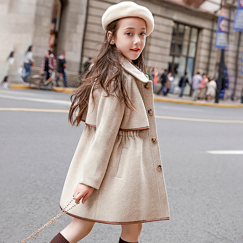 Girls woolen coat coat 2022 new princess Nizi medium and long version of Western style fashion British style children's woolen