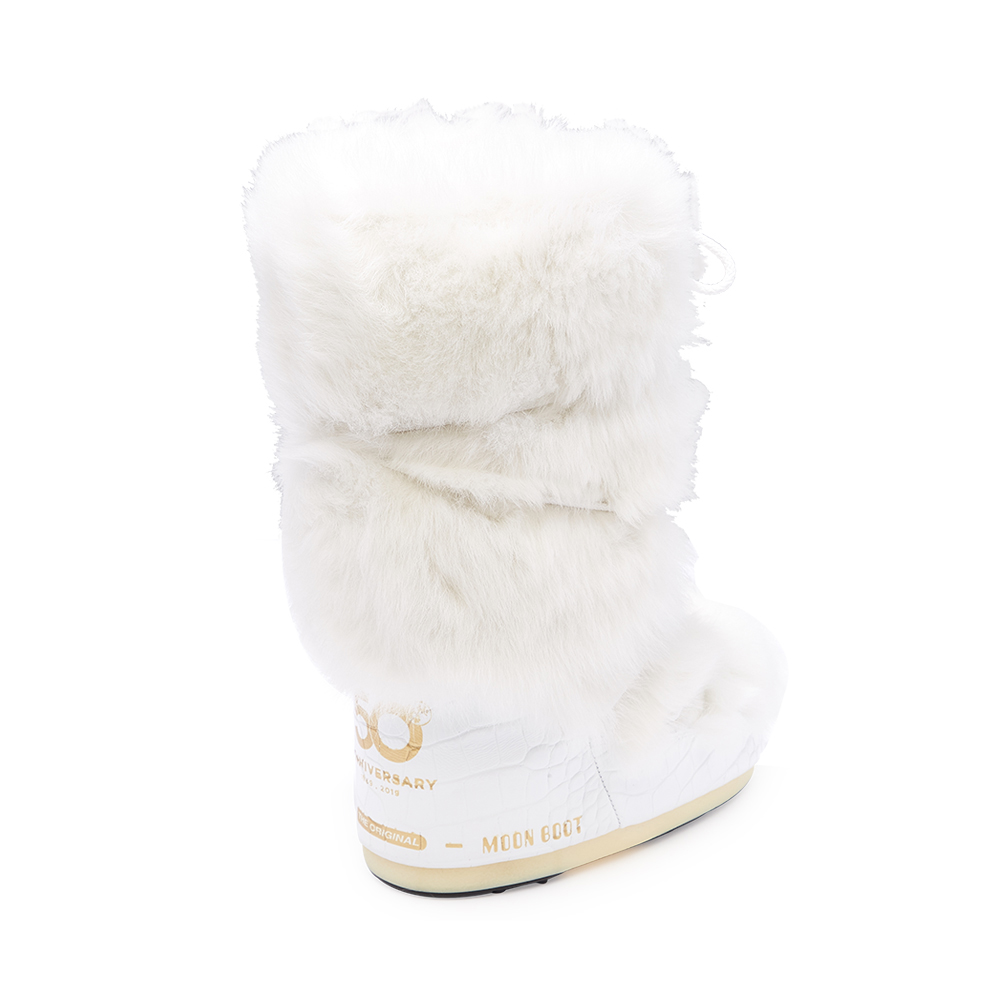 MOON BOOT (50th anniversary)WHITE WOOL leather stitching mid-tube snow boots WOMEN's shoes