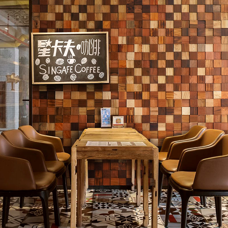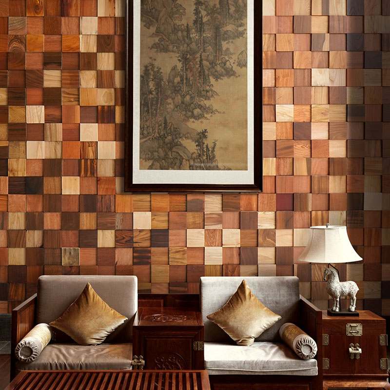 Original Red Wood Generous Block Tile Ship Solid Wood Mosaic TV Background Wall Lettering Hundreds of Three Words of Moral Jing