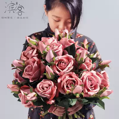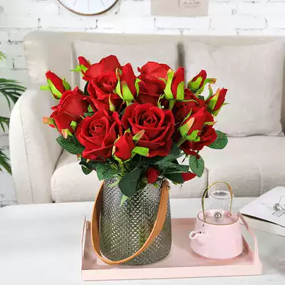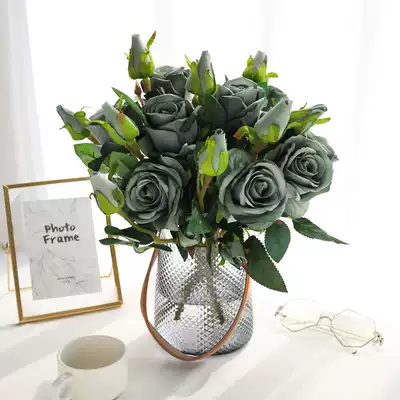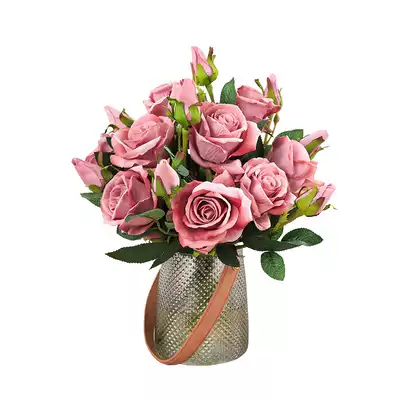 Vintage Bulgarian rose bouquet simulation flower living room decoration fake flower arrangement bottle dining table modern simple ornaments