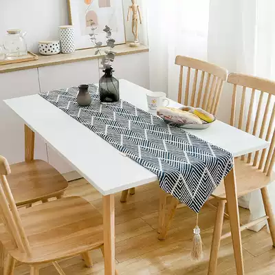 Japanese modern geometric stripe wave table flag long strip table cloth bed tail towel tea table cotton linen fabric decorative cloth custom