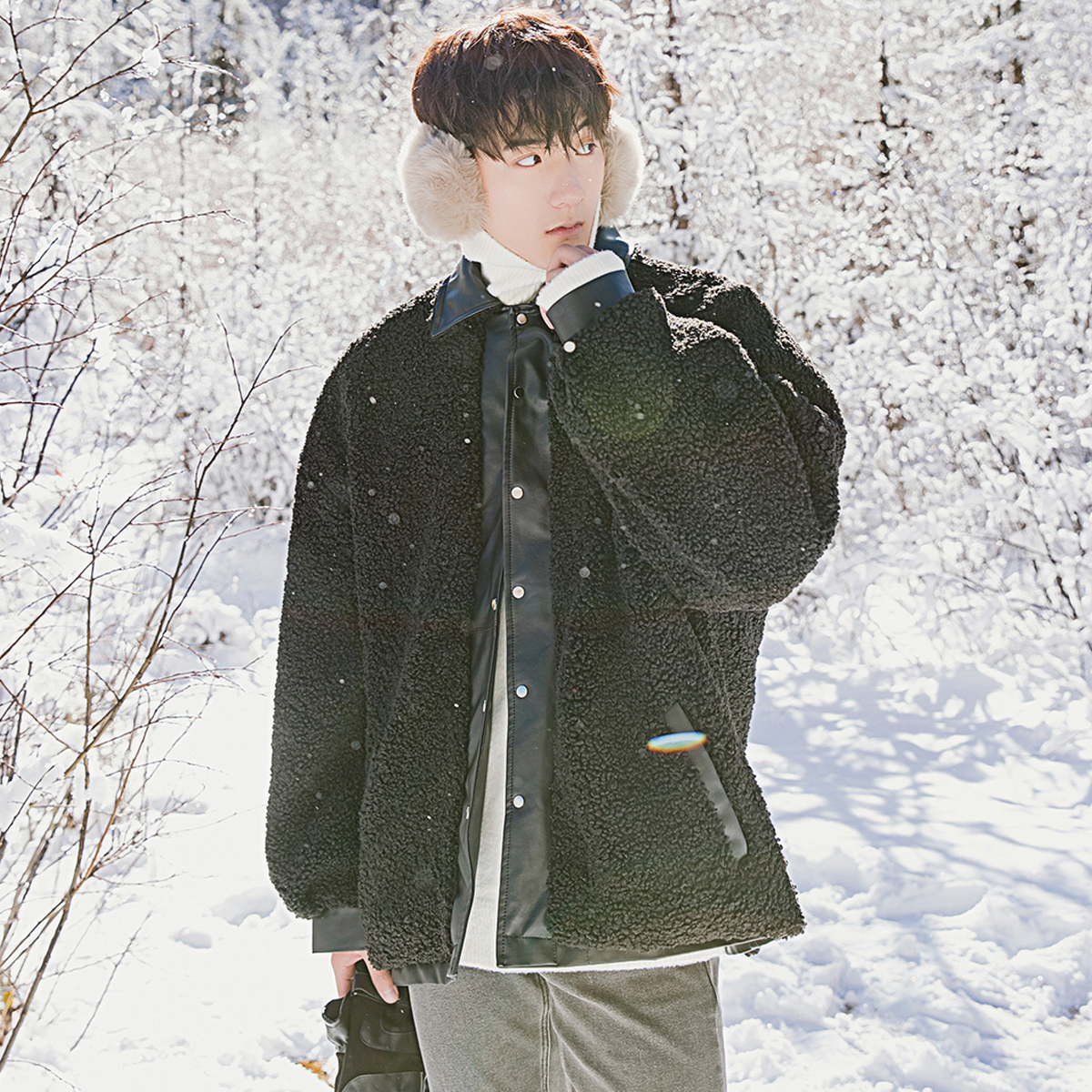 Sicilian men's clothing trend men's double-sided loose thickened lamb wool cotton coat men's winter Korean version