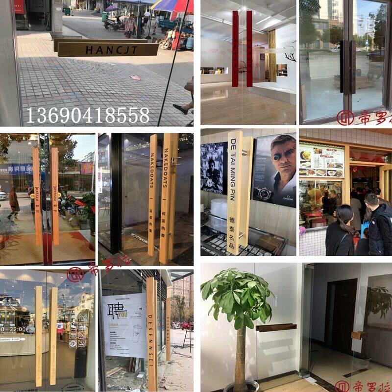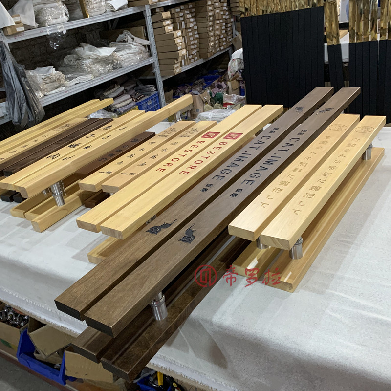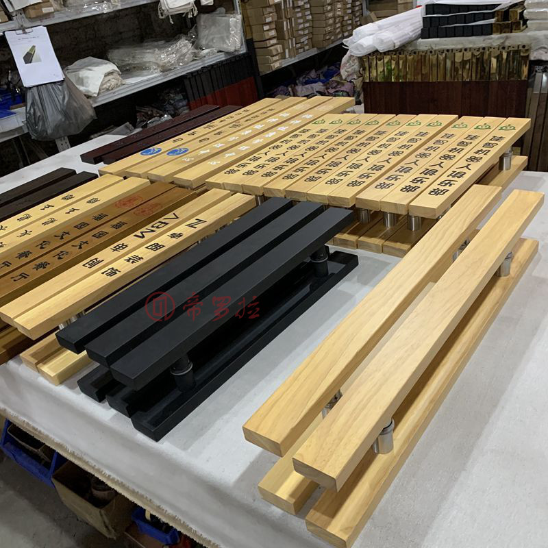 Custom glass door pull hand carved solid wood gate hotel original wood engraved wooden door handle LOGO spot
