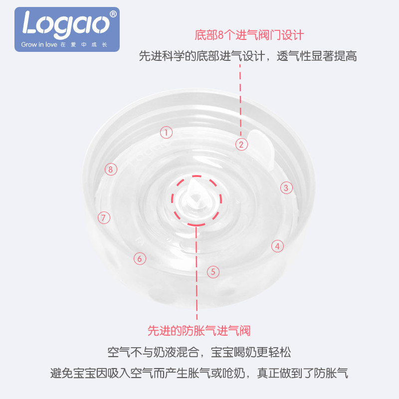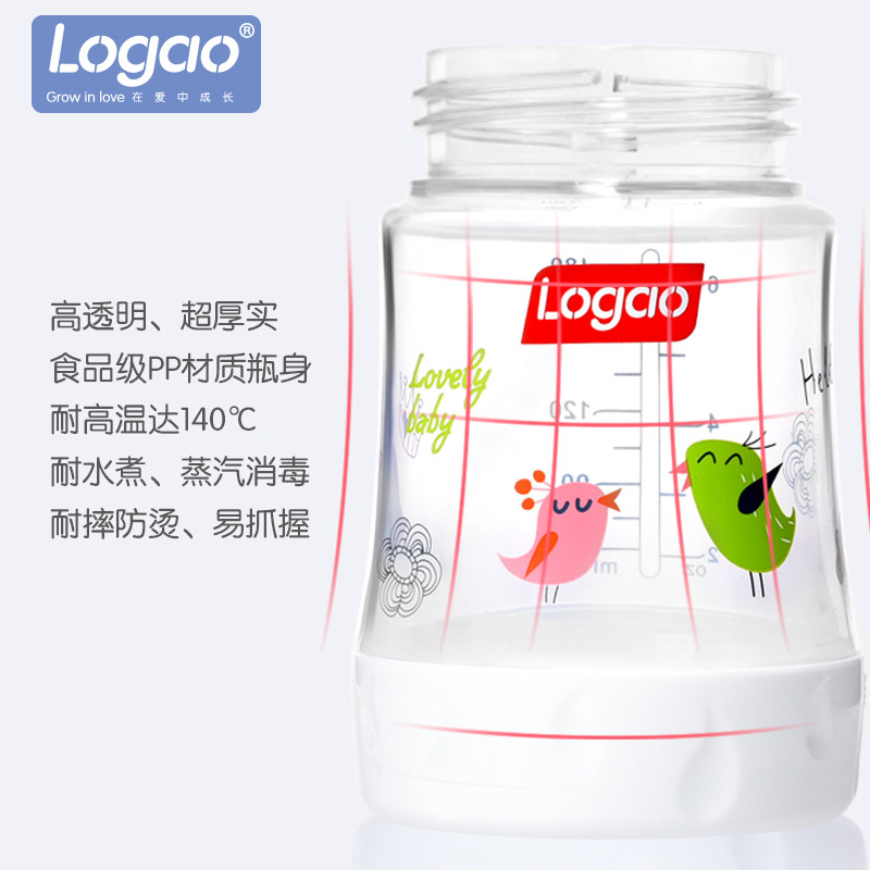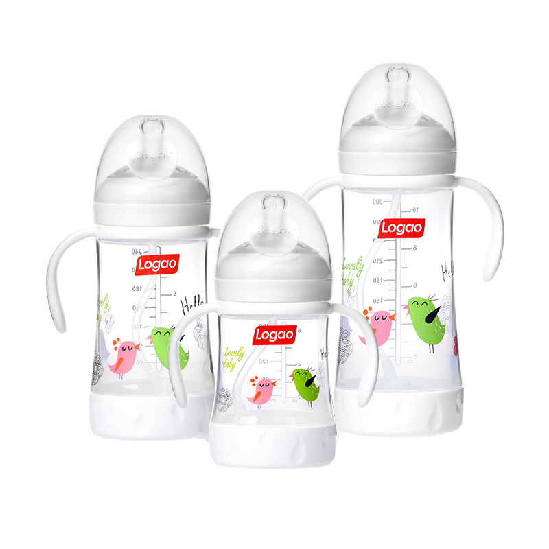 Logao anti-flatuls PP school drinking bottle anti-fall milk bottle wide calibre with handle baby easy to drink