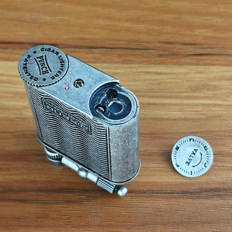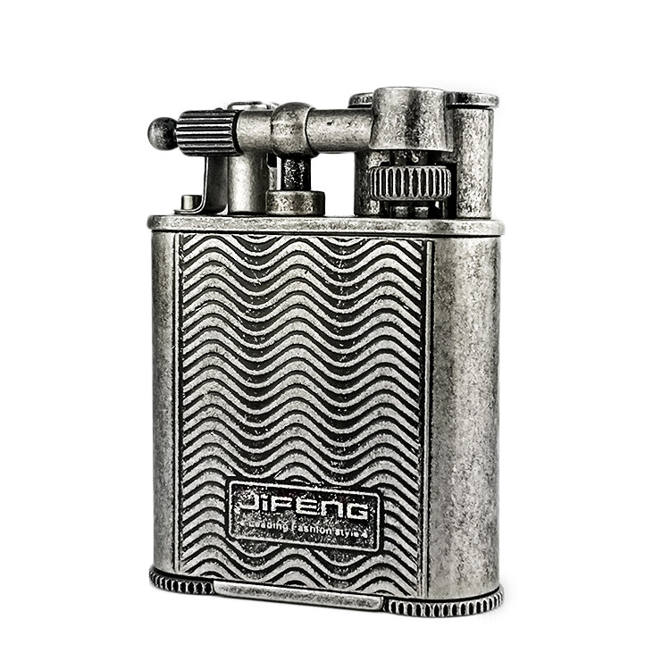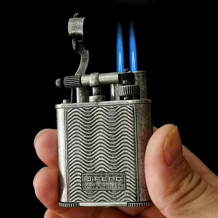 Monsoon Antique Silver Made Old Personality Men Copper Material Double Straight Flush Blue Flame Inner Cigar Knife Inflatable Lighter