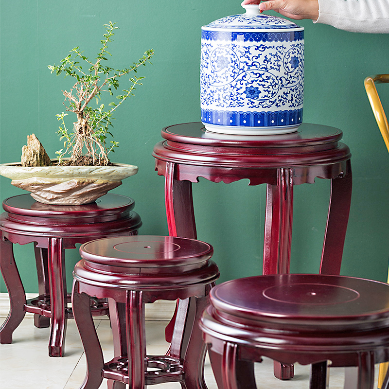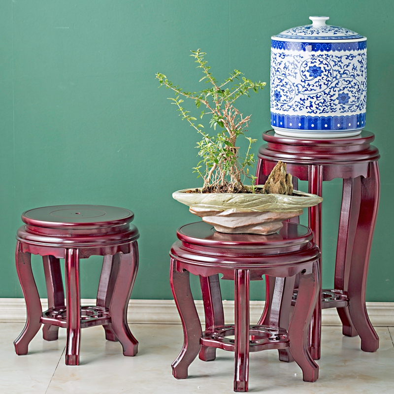 Imitation mahogany flowerpot bracket base solid wood stone strange stone Buddha fish tank ornaments vase base wooden flower stand round