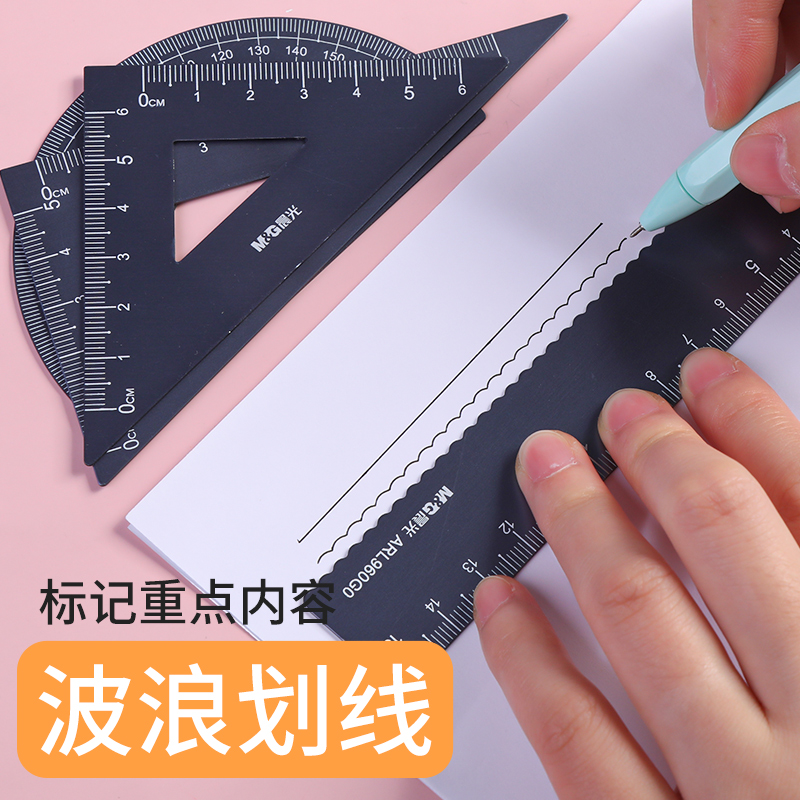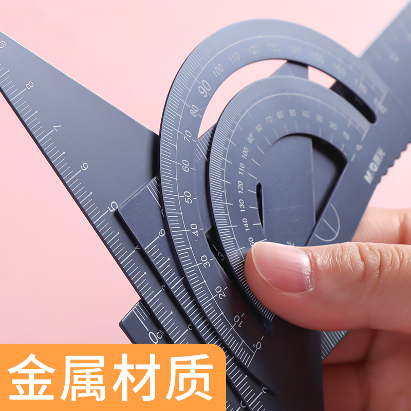 Morning light metal ruler a set of aluminum alloy ruler triangle ruler with wavy line protractor combination Children multi-function ruler four-piece set of Japanese and Korean drawing stationery