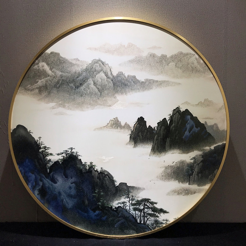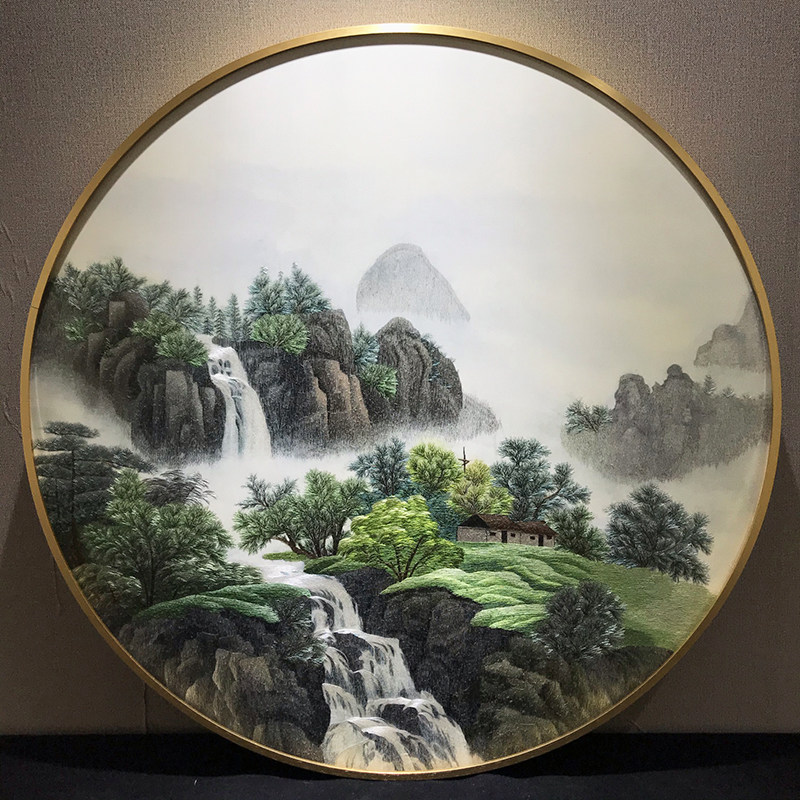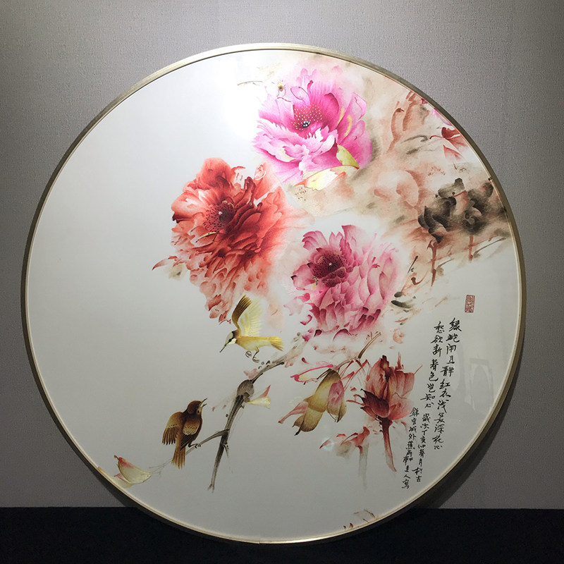 Handmade self-embroidery Suzhou embroidery round 100CM porch living room new Chinese style flower and bird Chinese style decoration finished frame hanging painting