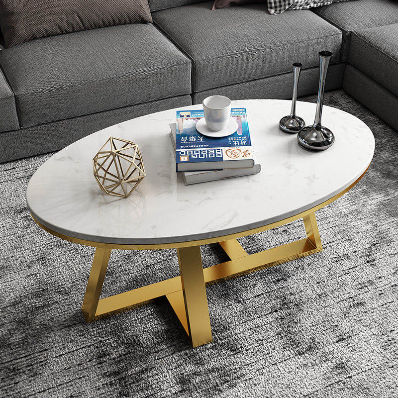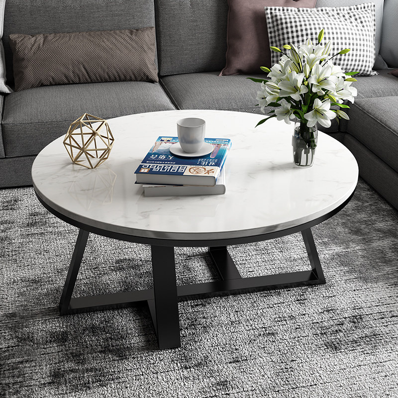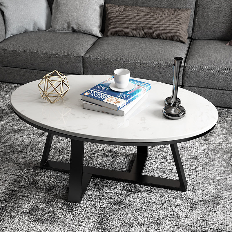 Nordic round small apartment light luxury marble coffee table oval modern minimalist living room net red creative wrought iron tea table