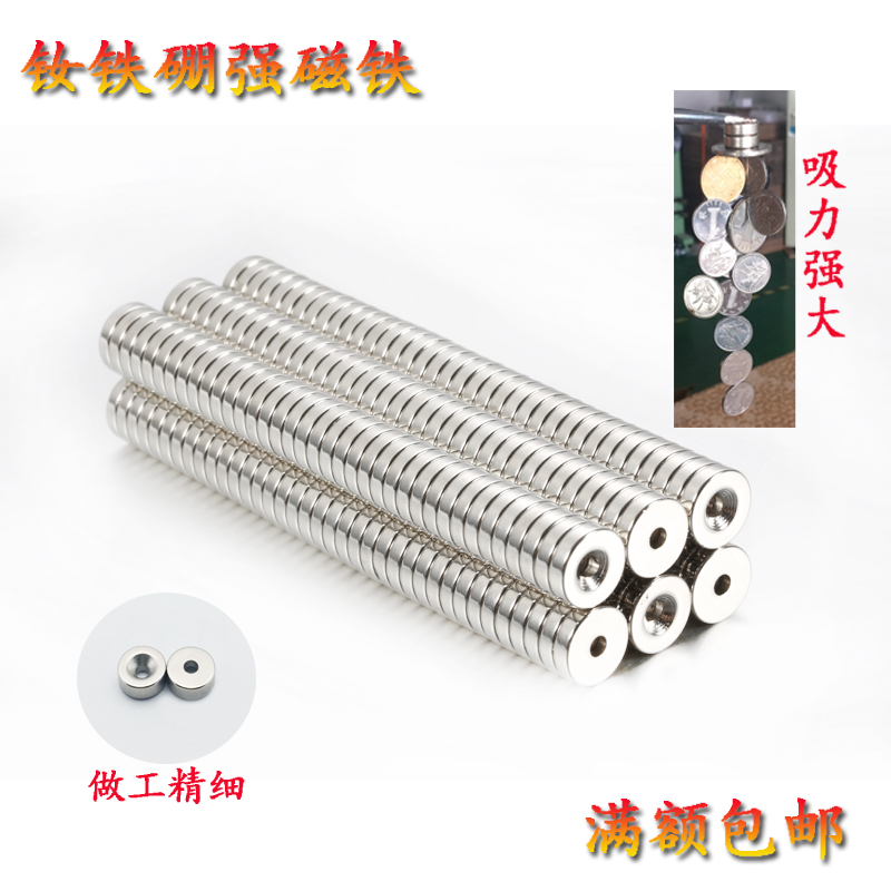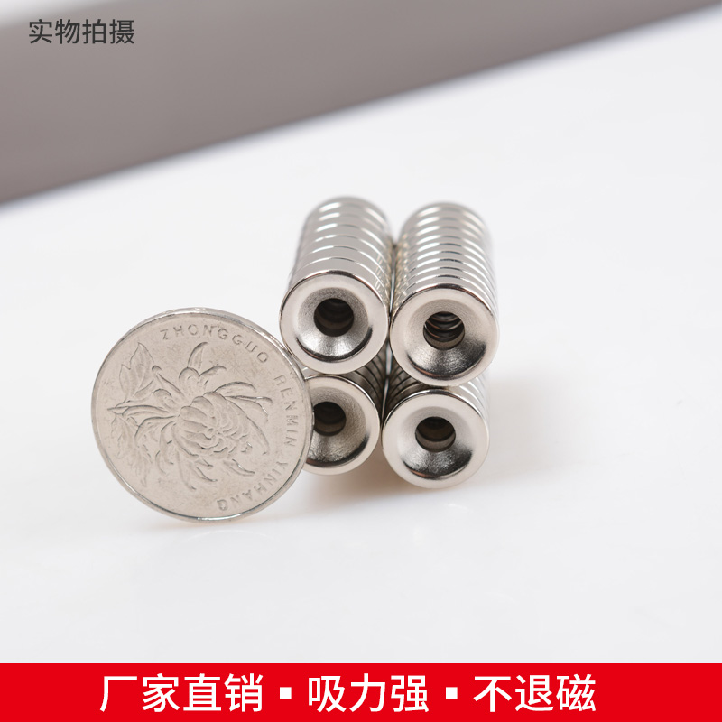 Countersunk head hole 12*3 round with hole strong magnet strong magnetic magnet super strong industrial magnetic steel neodymium iron boron hollow rubidium