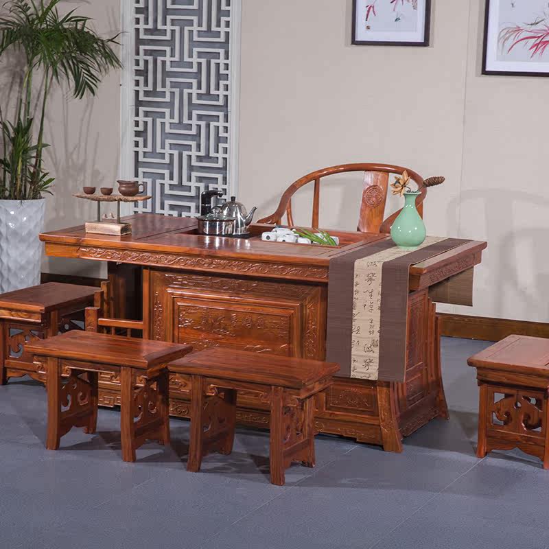 New Chinese style tea table and chair combination solid wood kung fu tea set table one small tea table home simple tea table